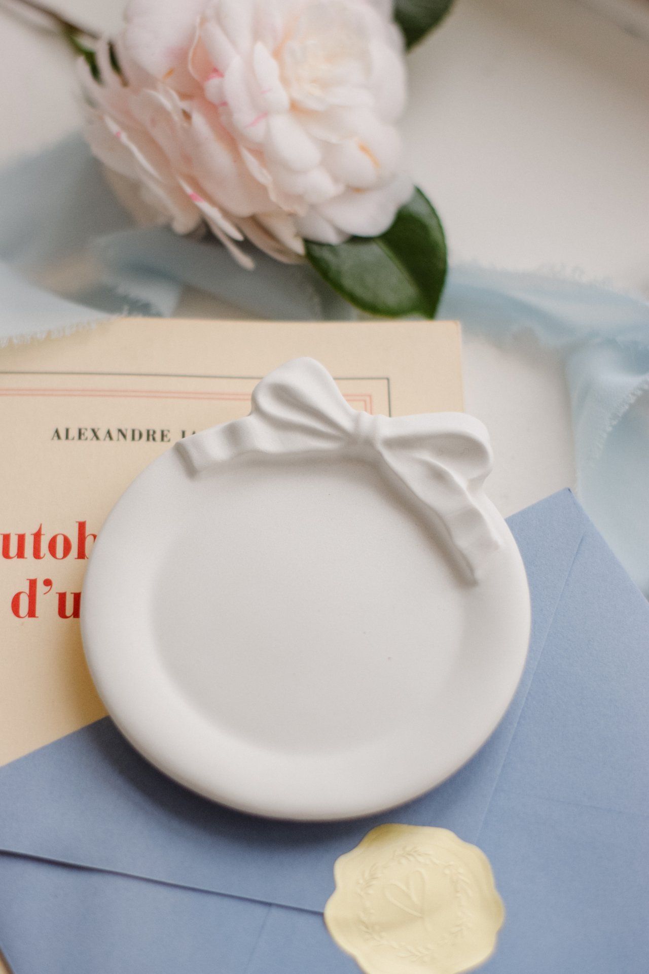 Apportez une touche de poésie et d’élégance à votre intérieur avec cette petite coupelle décorative fabriquée à la main en plâtre. Inspirée de l’univers délicat des salons de thé, elle séduit par ses lignes douces et son joli nœud en relief, symbole de raffinement et de tendresse.