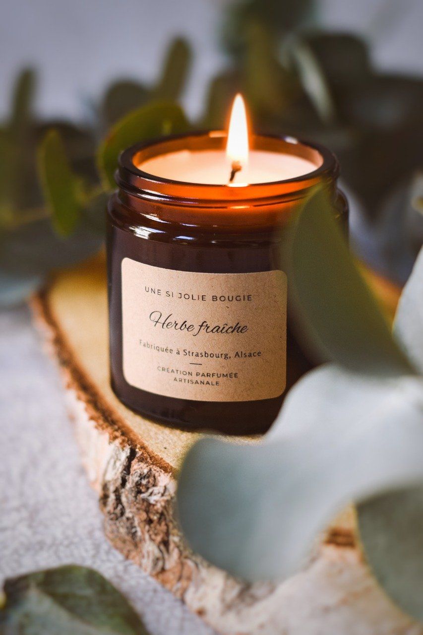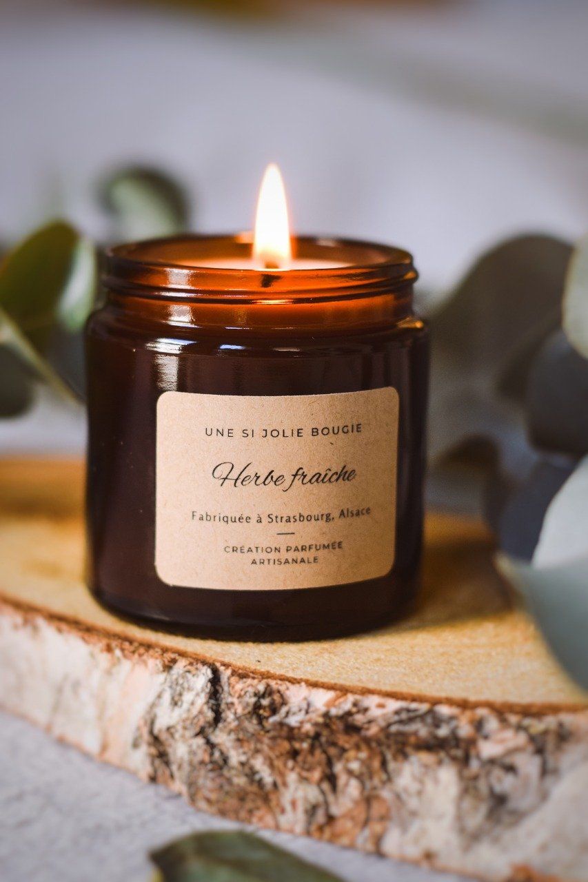 Contenant en verre ambré recyclable (à la fin de votre bougie vous pouvez facilement le nettoyer avec de l'eau chaude et du savon)