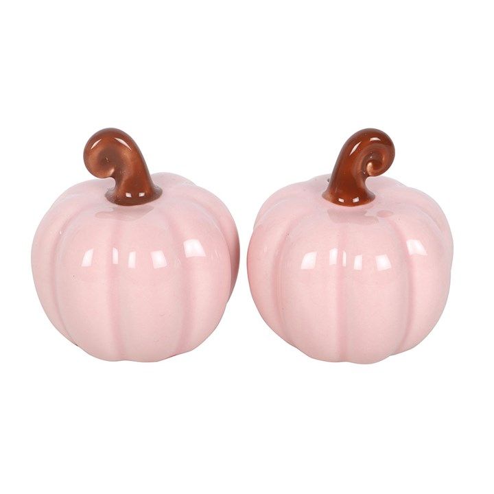 Salières et poivrières en forme de citrouille rose